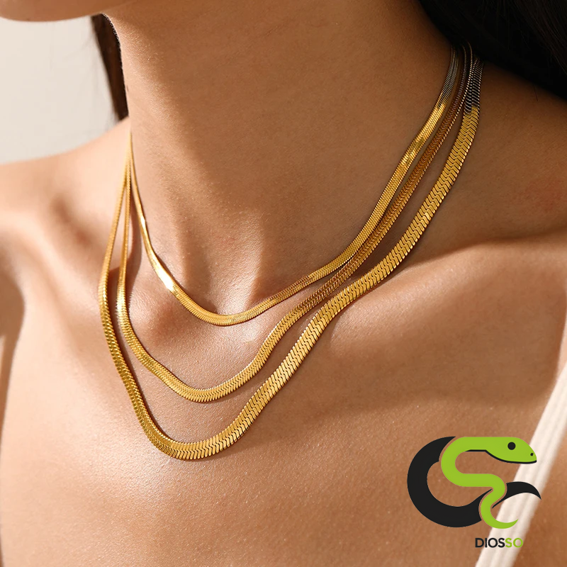 Classic Flat Herringbone Necklace Gold